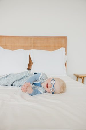 The safest alternative to loose blankets, our must-have Sleep Bag was made to help baby sleep through the night. Boasting three layers of buttery knit fabric for superior softness and stretch, it features a comfy, tag-free neck and a convenient top-to-bottom zipper for easy on and off. Available in your favorite Copper Pearl prints, this sleeping bag has a 1.25 TOG rating and a sleeveless design to offer the perfect amount of warmth for year-round use. We offer two sizes — a newborn wearable baby blankets for tiny ones, and a 6-12-month-size baby sleeping bag for older tots.
