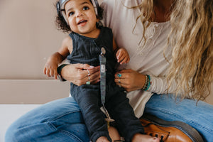 A chic way to keep baby’s pacifier close at hand.
